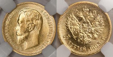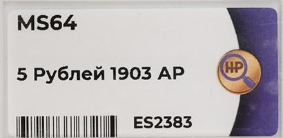 Лот 244 из 367. 5 рублей 1903 АР MS 64