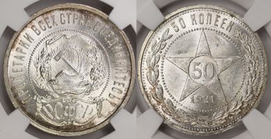 Лот 299 из 367. 50 копеек 1921 MS 64