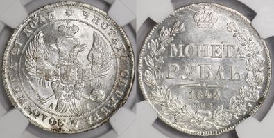 Лот 161 из 367. Рубль 1842 СПБ АЧ MS 63