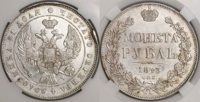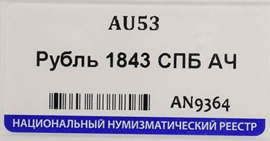 Лот 164 из 367. Рубль 1843 СПБ АЧ AU 53