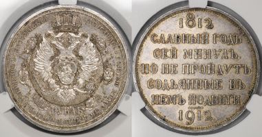 Лот 258 из 367. Рубль 1912 ЭБ "Славный год" 100-летие войны 1812 г. AU 58