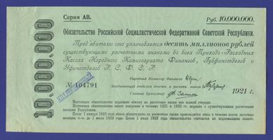Обязательство. Серия АВ. Надпечатка "Коллекционный" Редкость. XF