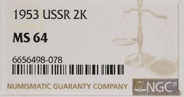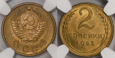 Лот 383 из 456. 2 копейки 1953 MS 64