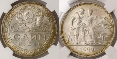 Лот 345 из 456. Рубль 1924 ПЛ MS 66
