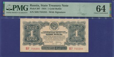1-й выпуск. Серия ШУ. Гринько. Редкость. Банкнота в слабе PMG 64 Choice UNC