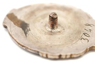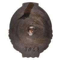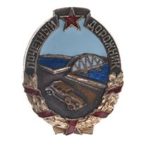 Учреждён постановлением СНК СССР № 760 от 17 июня 1938 г. Московский Монетный двор, 1946 - 1953 гг. Бронза, серебрение, эмаль, 7.7 гр. Размеры 24.67 х 18.76 мм. На гайке надпись МОНЕТНЫЙ / ДВОР. На реверсе выгравирован номер 3.048. Сохранность очень хорошая (XF+), укорочен винт.