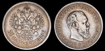 СПб Монетный двор. Серебро, 10.11 гр. Тираж 1.002 экз. Сохранность AU. В. В. Биткин "Сводный каталог монет России" № 82 (R2). В. В. Казаков "Монеты царствования Императора Александра III" № 706.