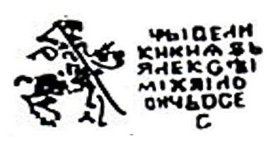 Новый денежный двор, 1655-1663 гг.. Л.с.: Всадник с копьём, под копытами коня буквы М и Д. O.с.: ЧЬ І ВЕЛИ / КИ КНАSЬ / ЯЛЕКСЫ / МІХЯІЛО / ВИЧЬ ВСЕ / С (Царь и Великий князь Алексей Михайлович Всея Руси). ГП №2655