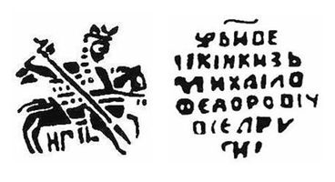 UNC. Новгородские монеты Михаил Фёдорович отличается низким качеством чеканки. Л.с.: Всадник с копьём, под конём буквы НГ. O.с.: ЦРЬ И ВЕ / ЛІКІИ КНЗЬ / МИХАІЛО / ФЕДОРОВІЧ / ВСЕЯ РУ / СИІ (Царь и Великий князь Михаил Фёдорович Всея Руси). ГП №655.