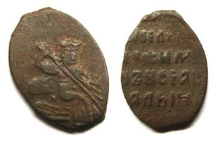 Редкая ! Надпись: [ЦРЬ] I ВЕЛ[IКI КНАЗЬ АЛЕК]СИ М[IХАIЛОВ]IЧЬ ВСЕА В[ЕЛИIКIЯ I М]АЛЫЯ [РОСИI САМОДЕРЖЕЦ]. Семенов 2013а, 37 (74), № 20. ГКХ № 2734; КГ № 1366.