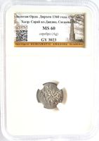 MS60. Султан Справедливый Махмуд Хызр хан Да продлится его правление / Чекан Сарая ал-Джедид 761. Сагдеева 302. Френ 127. Хызр (761-762 гг.х.), в русских летописях Хыдырь, потомок Шибана - пятого сына Джучи. Правил менее двух лет. Убит Тимур-Ходжой.