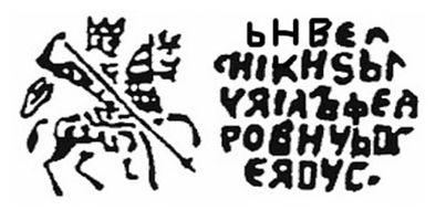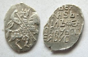 Очень редкая ! AU+/UNC. Русское царство, правление Михаила Фёдоровича Романова, 1613-1645 гг.. Имитация русских копеек - «деннинг». Копейка, 1619 г., г. Глюкштадт, Дания, мастер Альберт Дионис. Л.с.: Всадник с копьём. О.с.: псевдо-русский алфавит: Царь и Великий князь Михаил Фёдорович Всея Руси. ГХ №222.