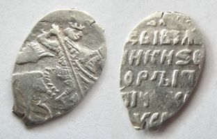 Редкая ! AU/AU+. Русское царство. Второе земское ополчение, ноябрь 1612 - март 1613 гг. … Копейка М с именем Фёдора Ивановича, Временный московский денежный двор. Л.с.: Всадник с копьём, под конём буква М. O.с.: ЦРЬ І ВЕЛІ / КИ KHS ФЕ / ДОРЪ ІВАН / ОВІЧЬ ВСЕА Р / YCІИ (Царь и Великий князь Фёдор Иванович Всея Руси).