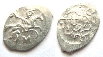 UNC. Штемпельный блеск. Денга М, г. Москва. Л.с.: всадник с саблей, под конём буква М. О.с.: ГОСУДАРЬ (вязью).