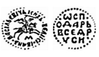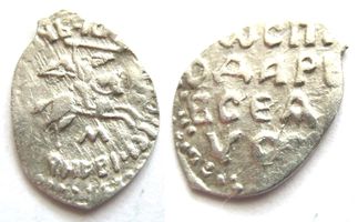 UNC. Штемпельный блеск. Высокая коллекционная сохранность. Денга М, чеканка после 1478 г., г. Новгород. Л.с.: всадник с поднятым мечом, КHZЬ ВЕЛІКІ ІВАНЪ ВАСІЛЬЕВІЧ. О.с.: ОСПОДАРЬ ВСЕЯ РУСИ.