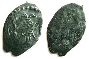 Очень редкая ! Инкузный брак чеканки. Отличное состояние для данного типа монет. Л.с.: Двуглавый орел с распростертыми крыльями, с кольцом на шее. О.с.: Трехстрочная надпись: ПУЛО / НОВАГО / РОДА. Средний вес 0,34 г. Орешников #54 1896 г.; Гулецкий-Петрунин #3265 2017 г.; Зайцев #140, 2006-2 г. Гайдуков # 440-441 , 1993 г.