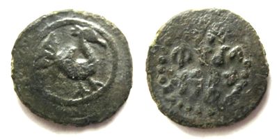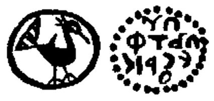 Редкая ! Великое княжество Тверское, 1247 - 1485 гг.. Пуло с названием города. Л.с.: Птица вправо с пышным хвостом. О.с.: Четырехстрочная надпись, отчеканенная зеркально: УП/ФТЪЛ /КРС Е/О. М - 1.42 г.