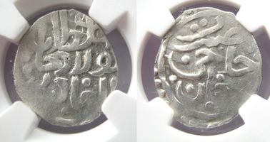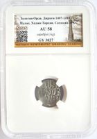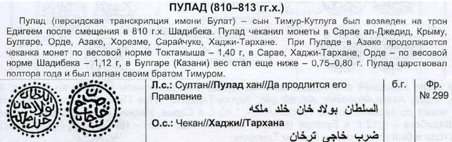 AU58. Султан Пулад хан Да продлится его правление / Чекан Хаджи Тархана. Сагдеева 499. Пулад (810-813 гг.x.), сын Тимур-Кутлуга, был возведен на трон Едигеем после смещения в 810 г.х. Шадибека. Пулад царствовал полтора года и был изгнание своим братом Тимуром.