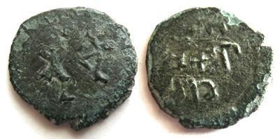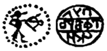 Редкое ! Большеформатное пуло. Великое княжество Тверское. Борис Александрович 1425-1461 гг.., Л.с.: лучник вправо. О.с.: ЛУП/ЬРЕФТ/ИКС (Пуло Тверское).