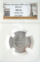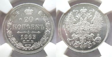 20 копеек 1863 СПБ АБ гурт пунктир