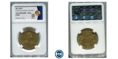 Монета в слабе ННР. Золото. Уздеников 113 -. Биткин 10 R. Следы реставрации - снятие с подвеса, удаление напайки. Следы легкой чистки.