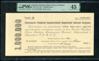 Управляющий Н.Н.Крестинский. Кассир . Серия Серия АБ.№244296 . Водяной знак В центре — герб РСФСР в фигурном круге с расходящимися лучами.. PICK P-120 Обязательство. Подписи-Народный комиссар финансов - Н.Н. Крестинский, заведующий отделом денежных и расчетных знаков - Тугарин, главный бухгалтер - Ф. Земит.