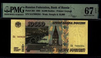 Серия НА 7898284 . Водяной знак Водяной знак 10000 рублей образца 1995. PICK P-263