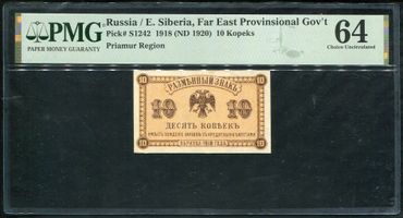 Водяной знак "Орлы"(сетчатка). PICK P-S1242 Временное Правительство Дальнего Востока Правительство А.С. Медведева