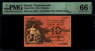 Серия IV А.Л.-0404. . Водяной знак Без водяного знака. PICK P-S731 Совет Бакинского Городского Хозяйства. Народный Комиссар - Н. Нариманов, Заведующий Финансовым Отделом - Г. Григорян.