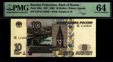 Серия ЦЦ 1142848 . Водяной знак Часовня в г.Красноярск и Цифры Номинала. PICK P-268с Модификация 2004 год. Эксперементальная серия