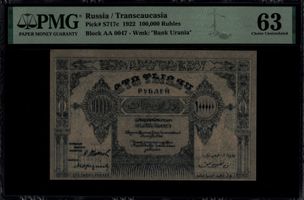 Серия АА 0047 . Водяной знак Водяной знак "Орлы влево". PICK P-S717с На слабе не правильно указан Водяной знак.Подпись- Народный Комиссар Финансов Н. Тагиев