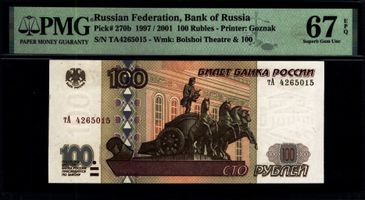Серия тА 4265015 . Водяной знак номинал 100 и фасад Большого Театра. PICK P-270b