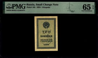 3 копейки 1924 года. PMG 65 EPQ