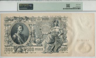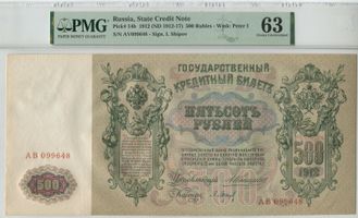 Управляющий А.В. Коншин. Кассир П. Барышев. Серия AВ 099648 . Водяной знак "500 рублей образца 1912" №44Б. PICK P-14а Выпуск Императорского правительства. На слабе не правильно указан Pick и Управляющий.