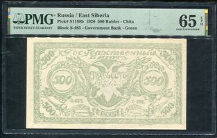 Серия С-485 . Водяной знак Водяной знак "Орлы в право". PICK P-S1188b Зеленая бона.Денежные знаки Российской Восточной Окраины. Атаман Г.М. Семенов.