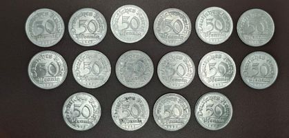 Лот из 16 монет номиналом 50 пфеннигов 1922 года