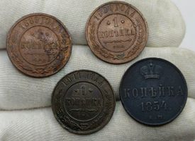 Лот из 4-х монет 1854-1911 года номиналом 1 копейка