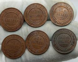 Лот из 6-ти монет 1912-1915 года номиналом 1 копейка