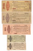 25-50-250-500-1000 Рублей 1919 Россия Сибирь Временное Правительство 5шт P# S840а, S841b, S842а, S843а, S844а. Срок 1 Февраля 1920 года. Разной степени сохранности