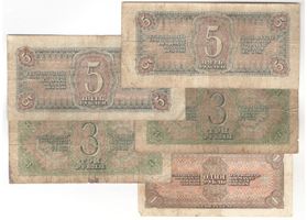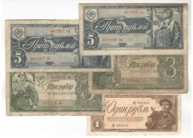1-3-5 Рублей 1938 Россия СССР 5шт P# 213а, 214а, 215а. Разной степени сохранности