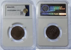 Слаб ННР №4PS624.Cостояние MS62 BN. Российская Империя.Редкая сохранность для данной монеты