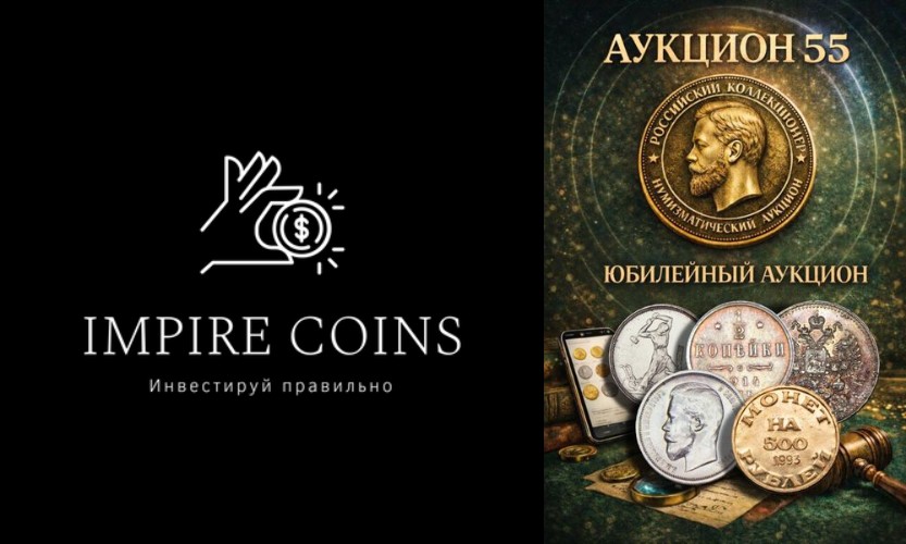 Старт нумизматического аукциона «Российский Коллекционер» №55 «Юбилейный» и аукциона монет «Impire Coins» №12