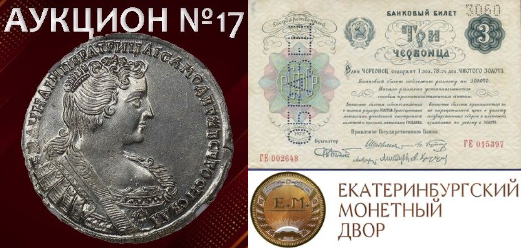 Завершение нумизматического аукциона «Монетный КабинетЪ» №17 и старт аукциона бонистики Екатеринбургский Монетный Двор | №24